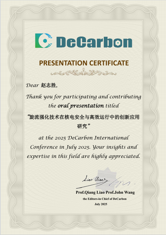 碳捕集转化及细颗粒物分离纯化团队研发的旋流强化技术及其在核电领域的工程应用,详细阐述了旋流器设计与分离机理的突破性成果,并与现场专家深入讨论了技术工业化适配性、高精度分离稳定性及火电、化工领域跨行业应用潜力等关键问题,就设备耐腐蚀性提升、流场模拟优化等方向形成共识。值得注意的是,会议召开同期(7月22日),中国聚变能源公司作为国家队新平台正式成立,标志着我国可控核聚变进程迈入新阶段,同时彰显出核电领域安全及高效运行等研究的发展前景。