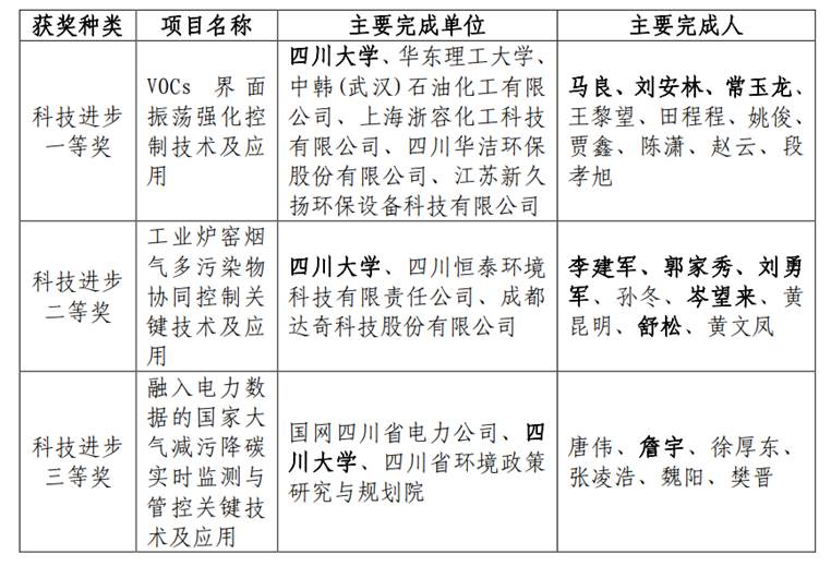 教师牵头获得四川省科技进步一等奖1项、二等奖1项,作为第二完成人获得科技进步三等奖1项。学院在项目中充分发挥了科研创新与人才优势,为推动国家“双碳”战略目标的实现贡献了重要力量。