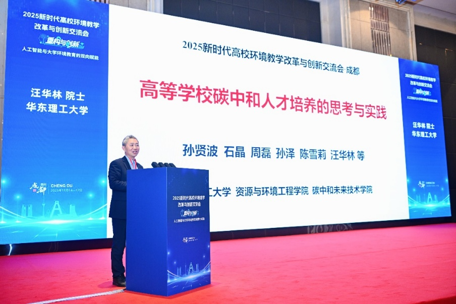 国家烟气脱硫工程技术研究中心主任汪华林教授受邀做大会主旨报告“高等学校碳中和人才培养的思考与实践”,详细分析了碳中和学科的发展现状与面临的挑战,并对学科建设与人才培养的核心需求及未来发展方向进行了深入剖析。