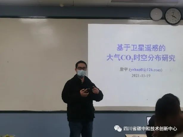 詹宇副教授作了题为“基于卫星遥感的大气CO2时空分布研究”的报告,介绍了基于卫星遥感数据建立机器学习模型,应用于重构全面域时空分布XCO2(大气CO2混合比)的研究。詹宇副教授的研究对温室气体的监测、排放控制以及情景分析意义重大。靳紫恒博士以“微流控技术制备环境材料”为题分享了微流控在环境中的应用及其与碳中和的关系:采用微流控技术可以倍级提升反应效率;通过集成芯片微化工可降低化工事故发生率;通过液滴微流控可精准、连续制备降解、吸附的功能材料。